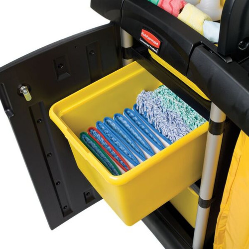 - Secure cabinet doors keep cleaning supplies concealed from view and locked up when carts are unattended.